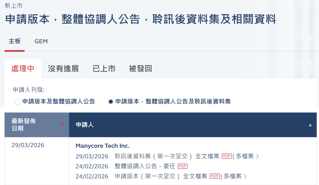 3月29日,港交所网站显示,空间智能独角兽公司Manycore Tech Inc.(以下简称“群核科技”)更新聆讯后资料集,标志着公司已顺利通过港交所上市聆讯,港股IPO进程迈入最终冲刺阶段。本次IPO由摩根大通和建银国际担任联席保荐人。